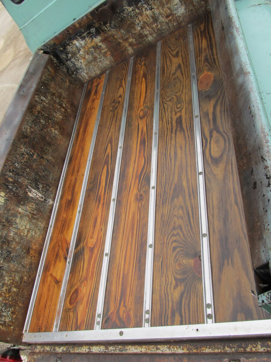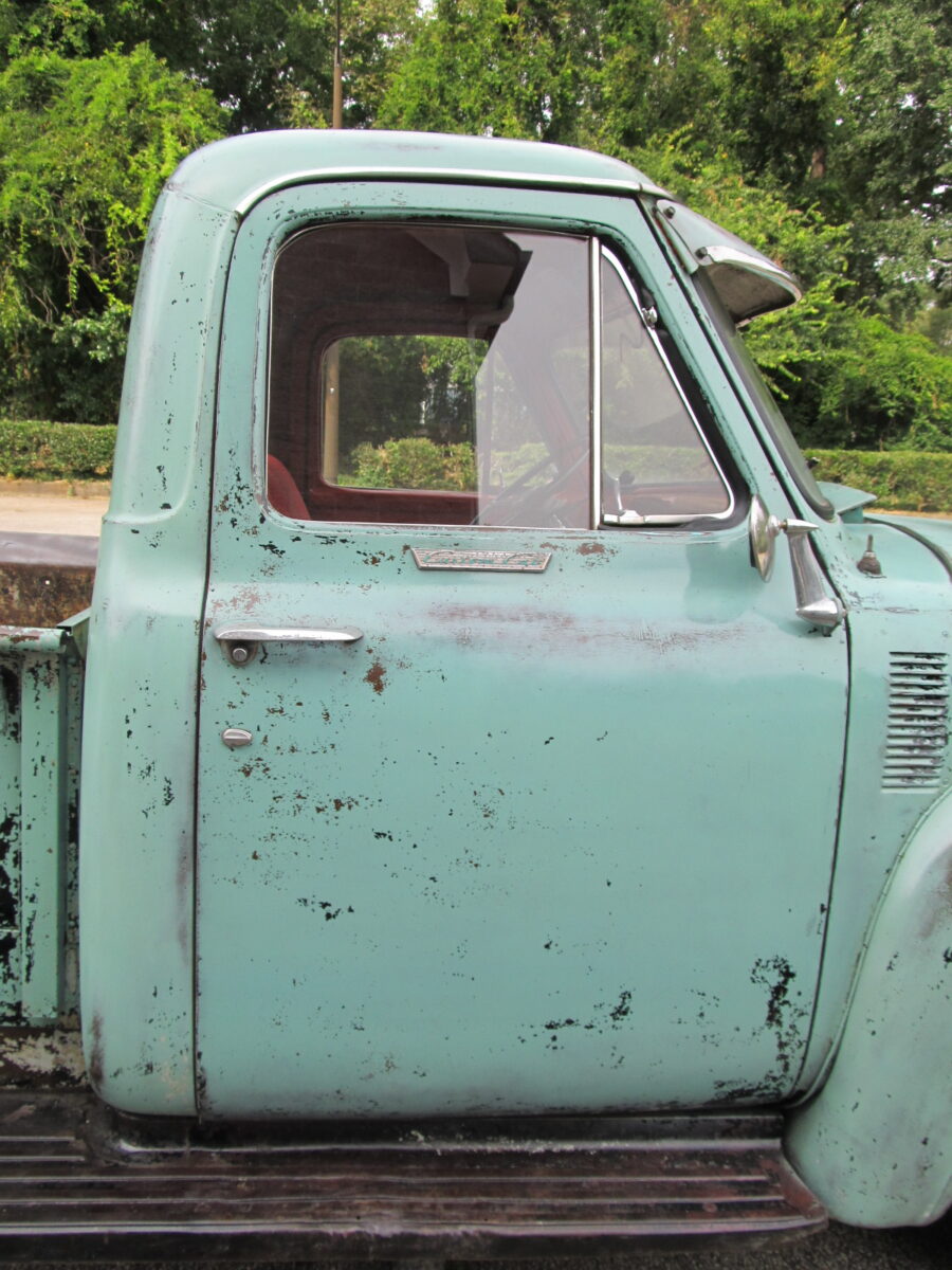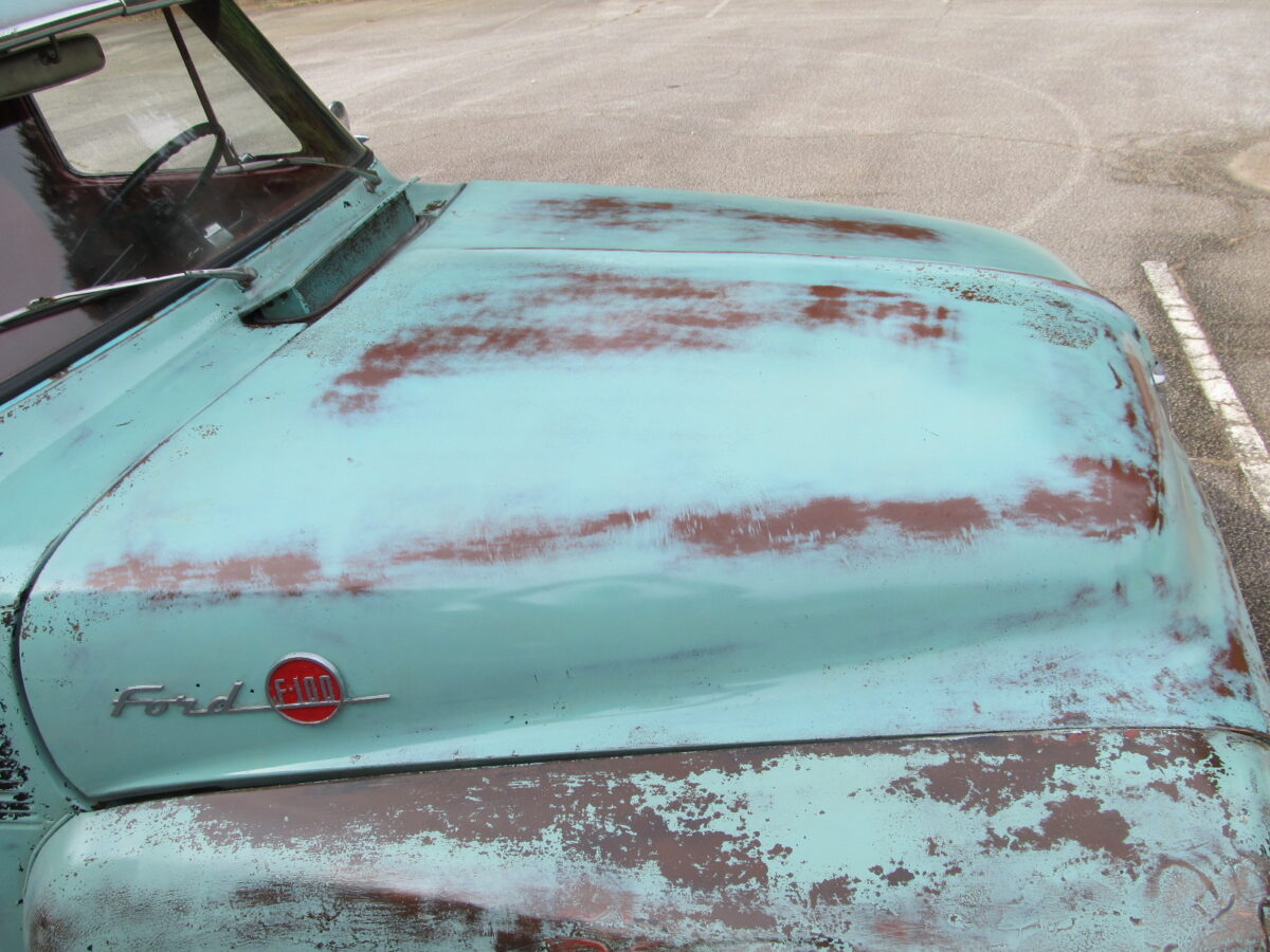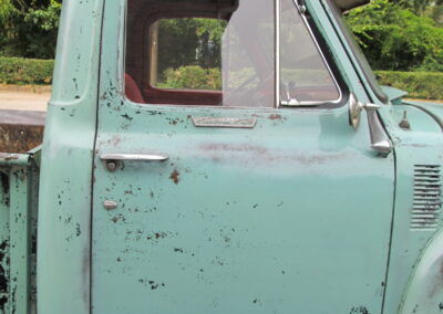 - Paint/Body: Beautiful old paint patina with a fresh clear coat on it. There are a few notable spots of rust through, but overall this truck is original steel and very solid.