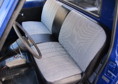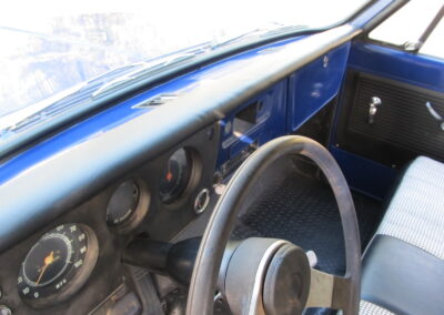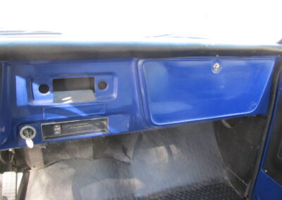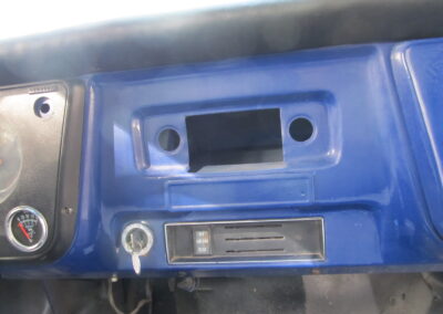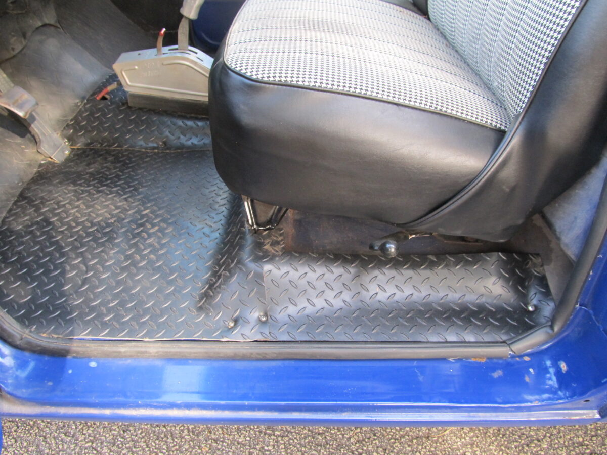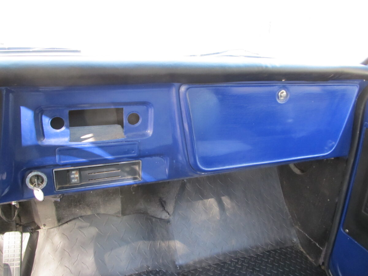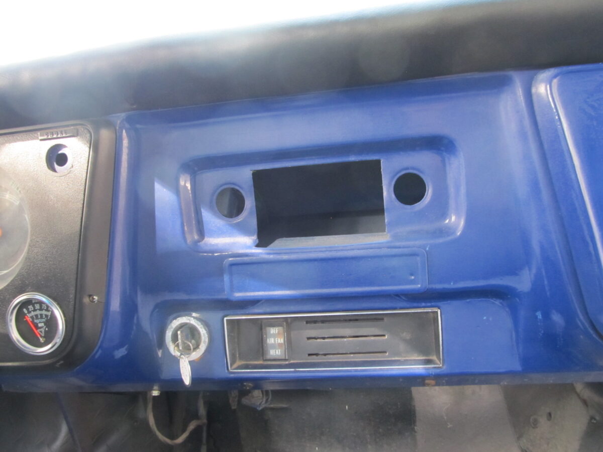 - Interior: Uncut original dash, speedometer does not work. Fuel gauge does work along with turn signal indicator (right needs a bulb but clicks). Seat has new upholstery. Rubber diamond mat on the floor. Dash cap is in great shape. No dome light. Heater is not present.