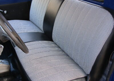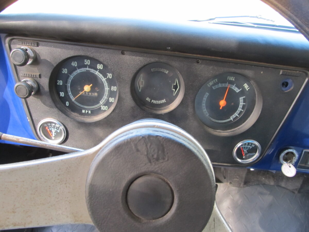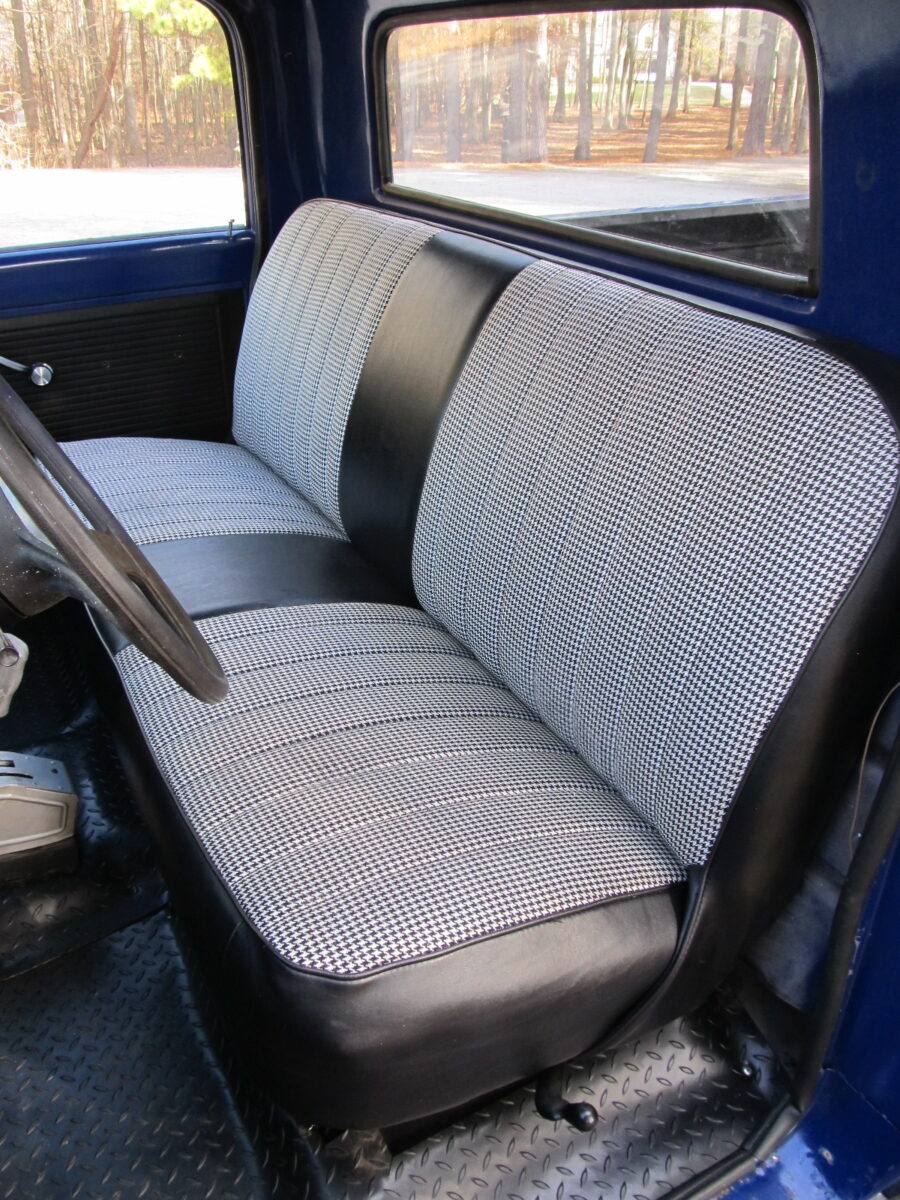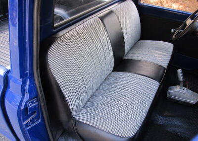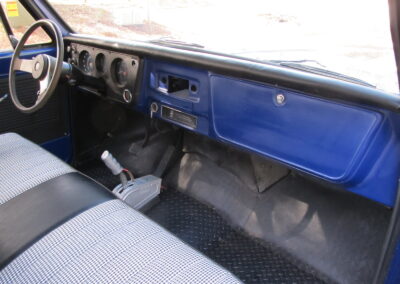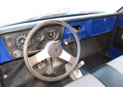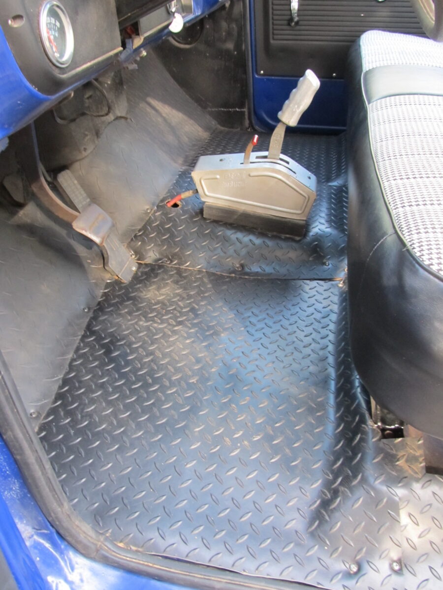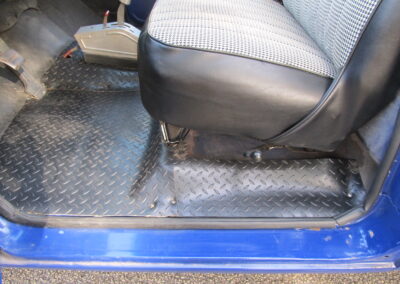 - Interior: Uncut original dash, speedometer does not work. Fuel gauge does work along with turn signal indicator (right needs a bulb but clicks). Seat has new upholstery. Rubber diamond mat on the floor. Dash cap is in great shape. No dome light. Heater is not present.
